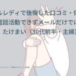 【メールレディで後悔した口コミ・体験談⑦】夜に電話活動できずメールだけでは稼げなかった|たけまい(30代前半・主婦)インタビュー